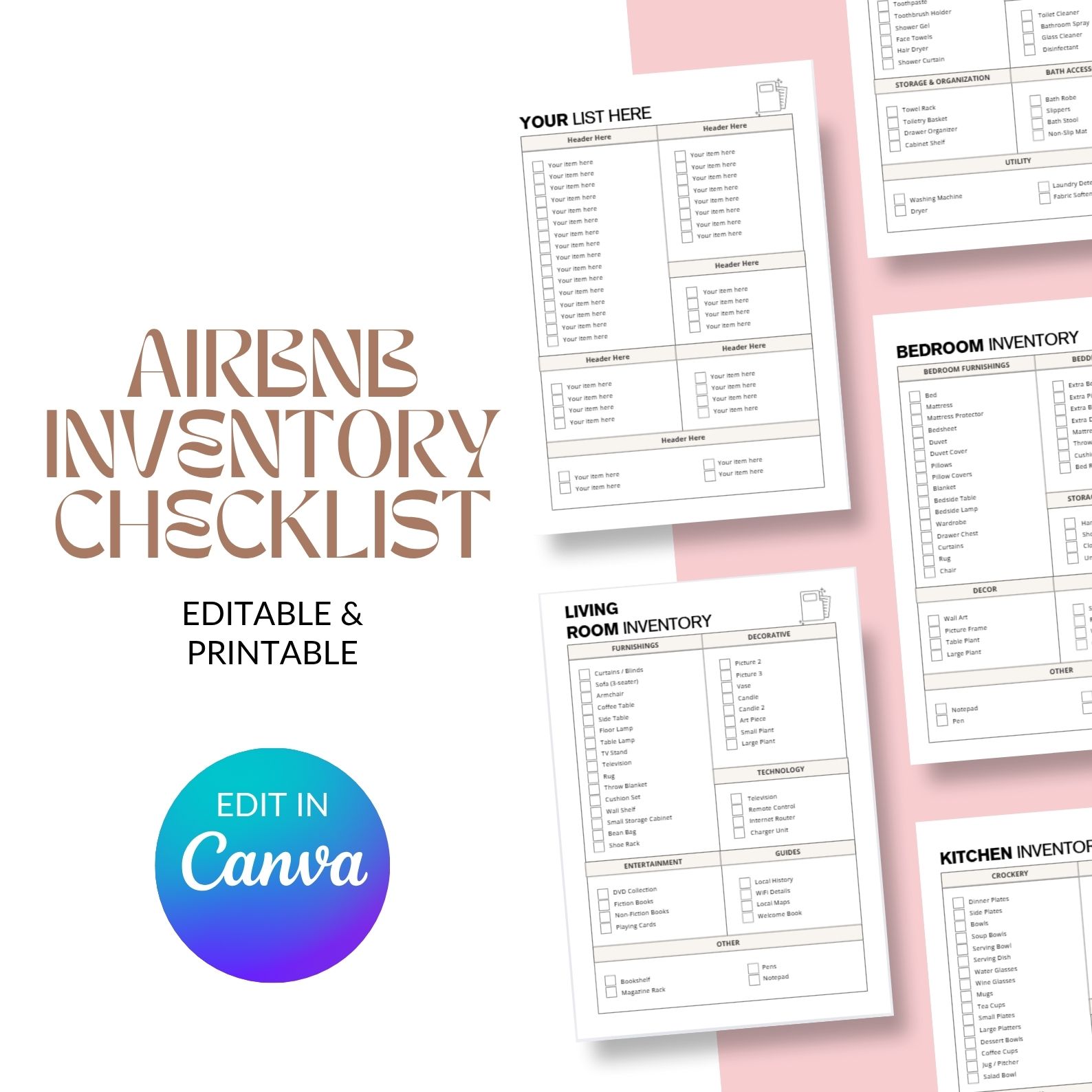 • Editable Airbnb Inventory Checklist Template (Canva)