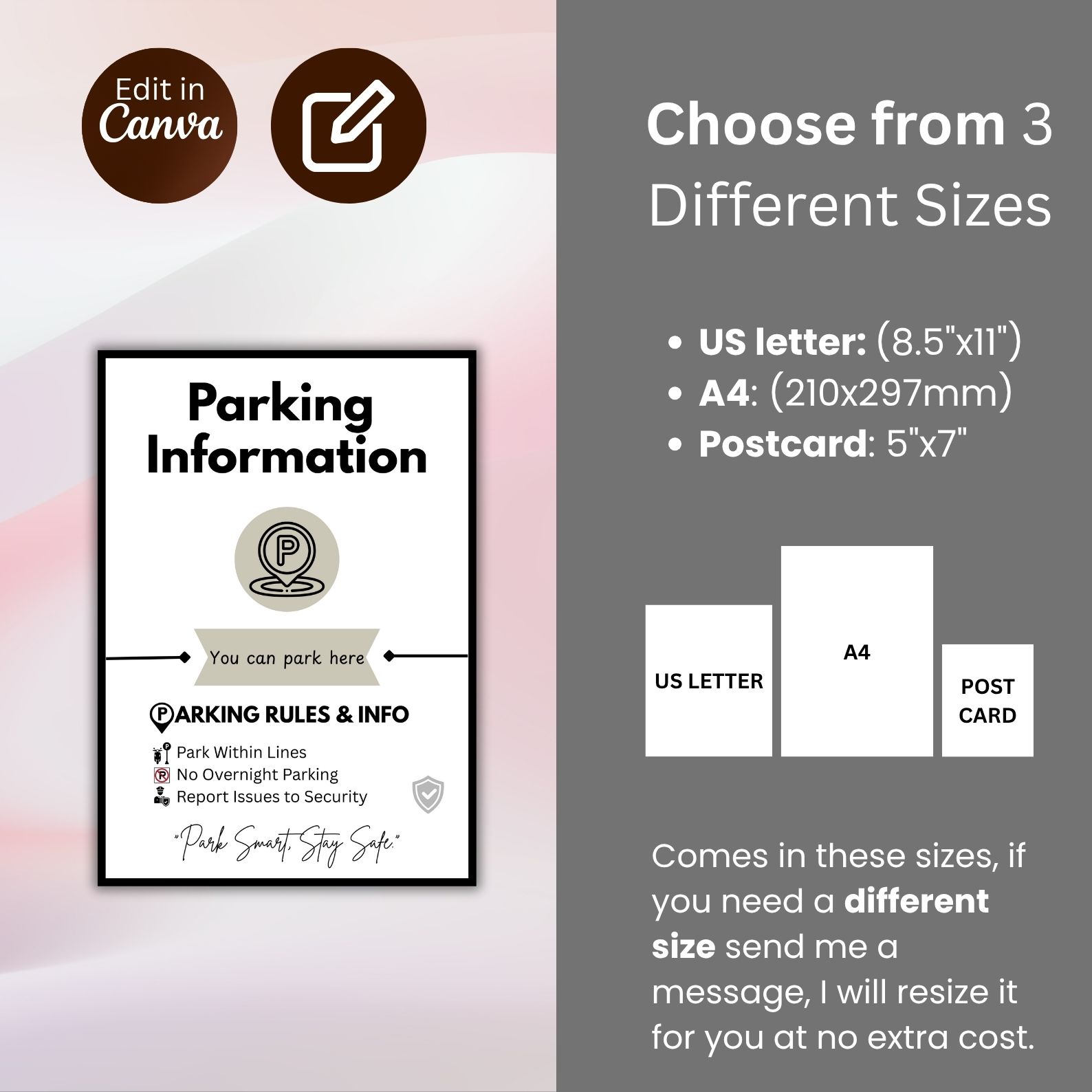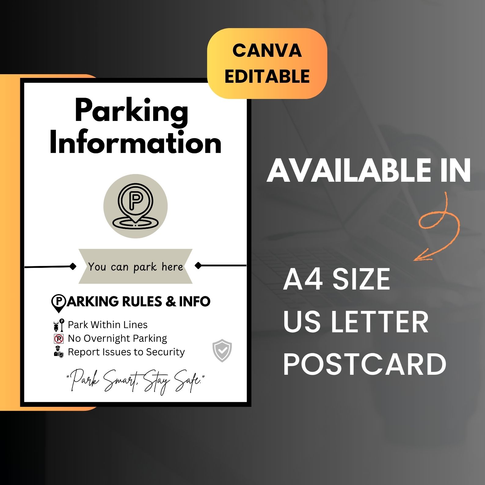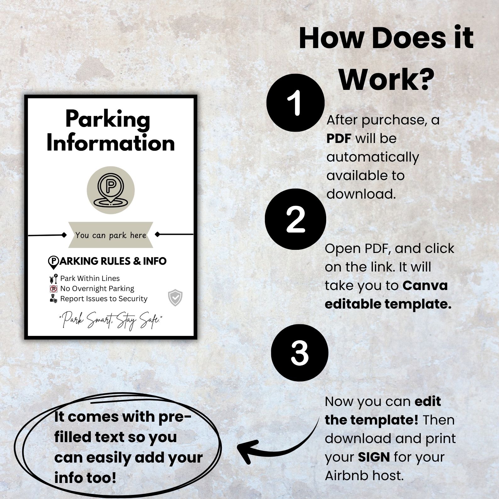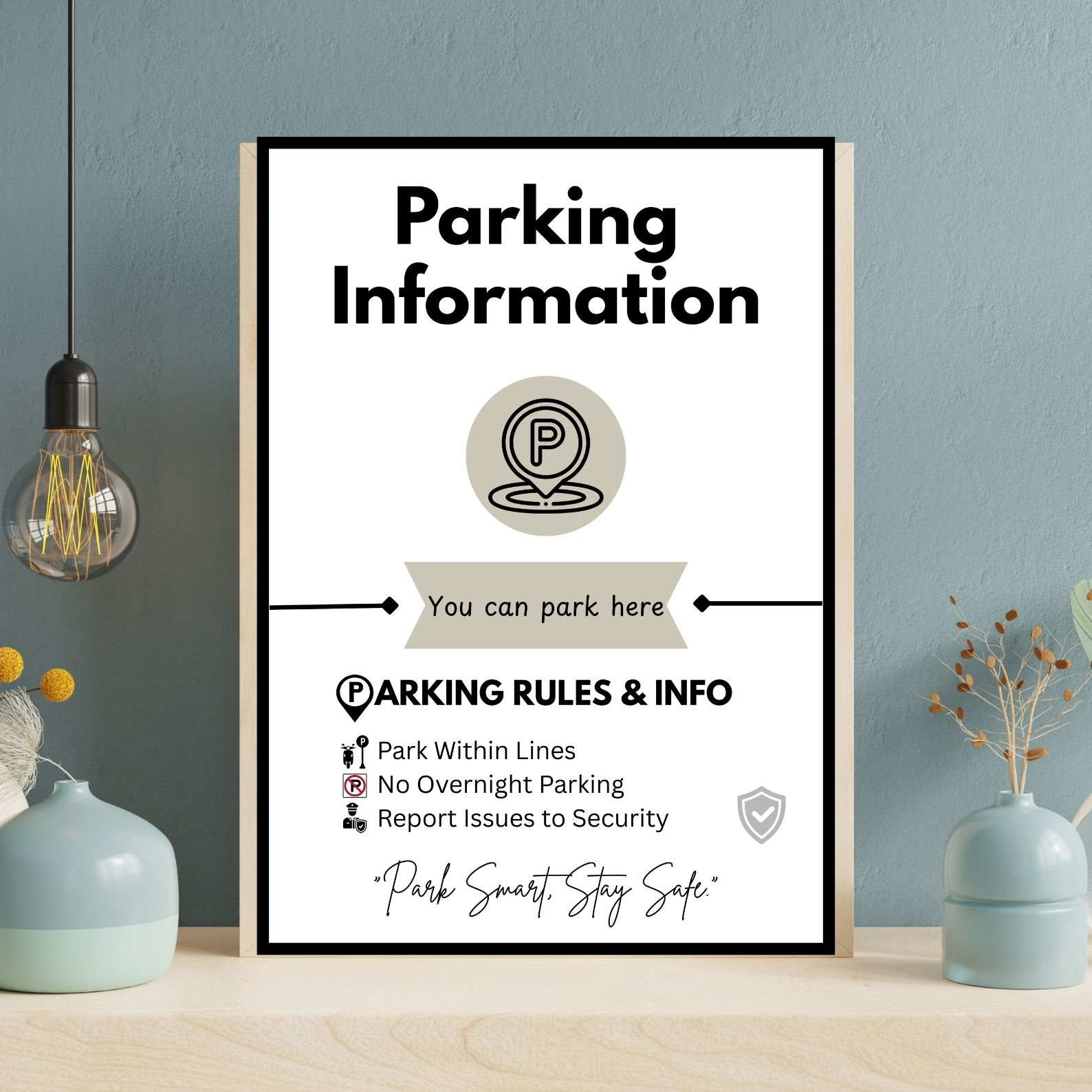 Guide your guests with style and clarity using this Airbnb Parking Sign Template, designed for short-term rental hosts who want to provide clear parking instructions and elevate their property presentation.