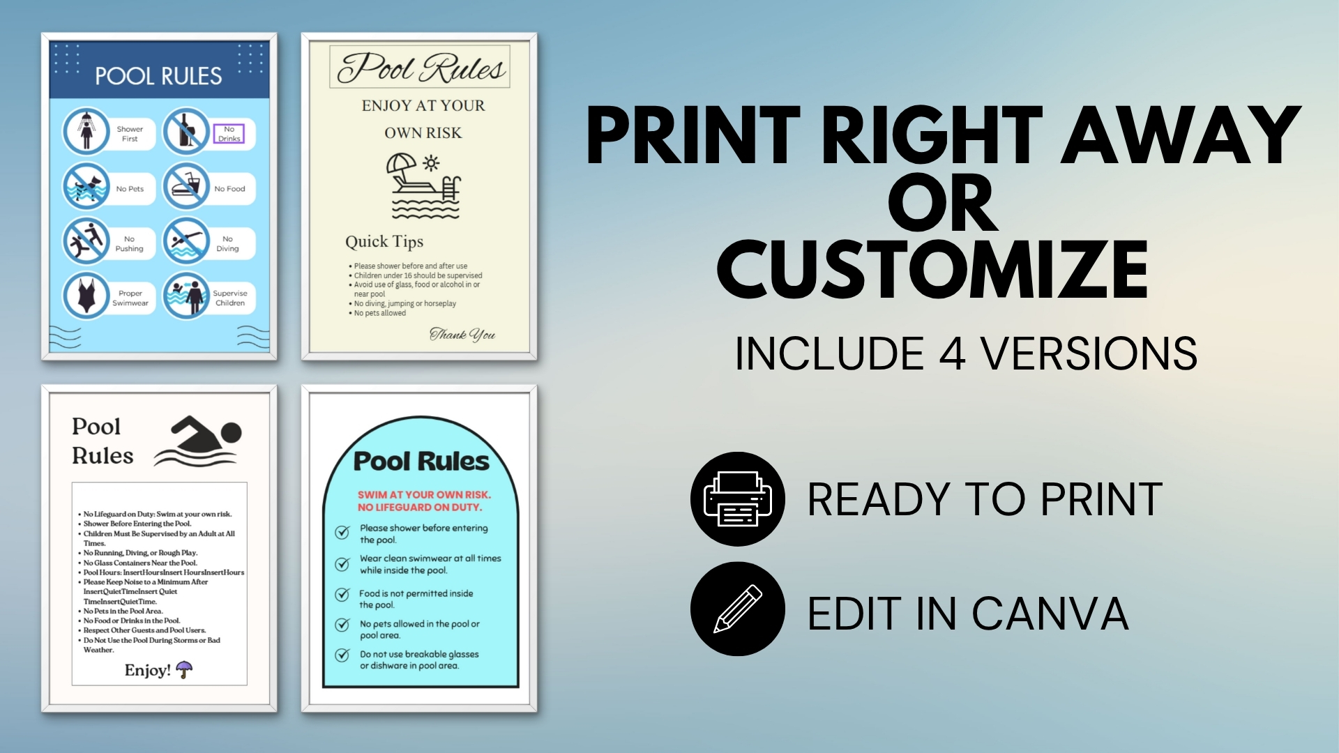 Keep your guests safe and informed with this Airbnb Pool Rules Template. Designed for Airbnb and short-term rental hosts, this template provides clear, professional rules for using your pool, ensuring a safe and enjoyable experience for everyone.