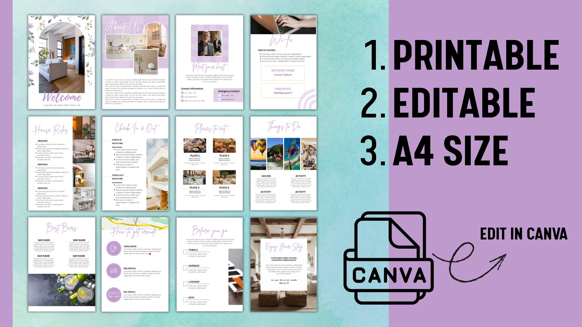 Airbnb Welcome Book Template Printable Canva Editable
