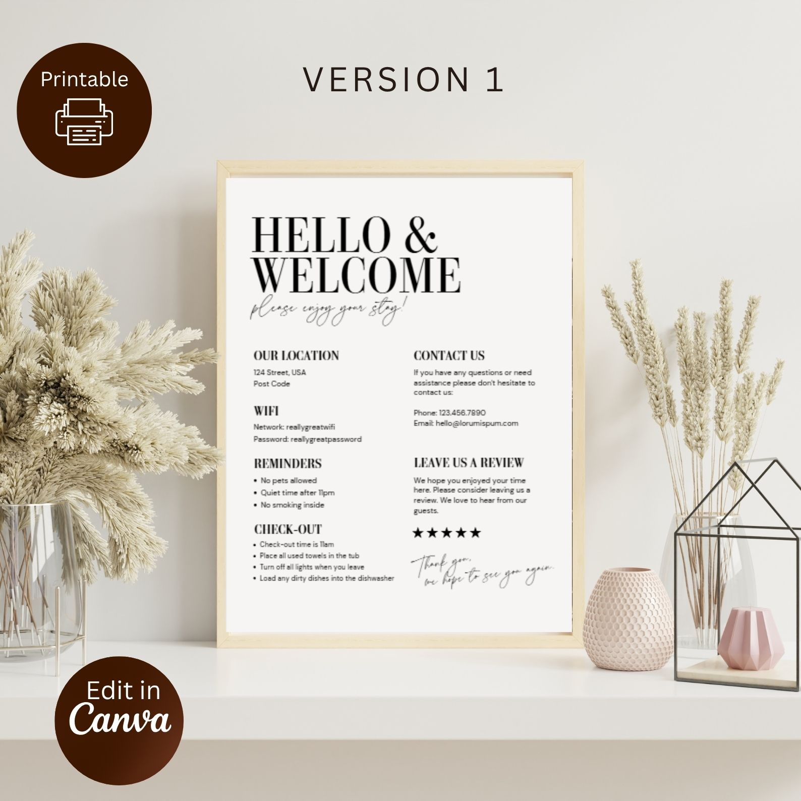 - Editable Airbnb Welcome Sign Template (Canva + PDF)